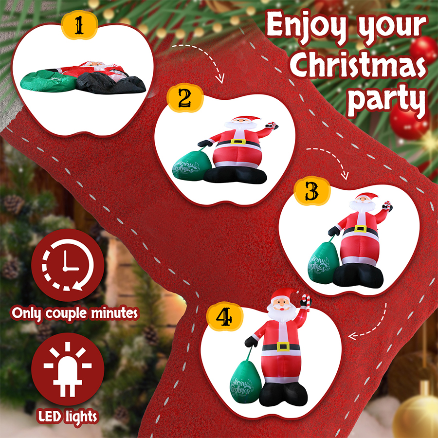 Perfect for Any Holiday Scene: Ideal for front yards, lawns, gardens, patios, or indoor events, this inflatable Santa brings festive cheer to homes, stores, and Christmas parties.