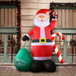 Make your holiday season shine with the 14FT Lighted Inflatable Santa Claus Decoration — a stunning centerpiece for any Christmas celebration. Standing an impressive 14 feet tall, this cheerful Santa features a big smile, a waving candy cane, and a large gift bag, instantly transforming your yard or garden into a magical holiday scene.