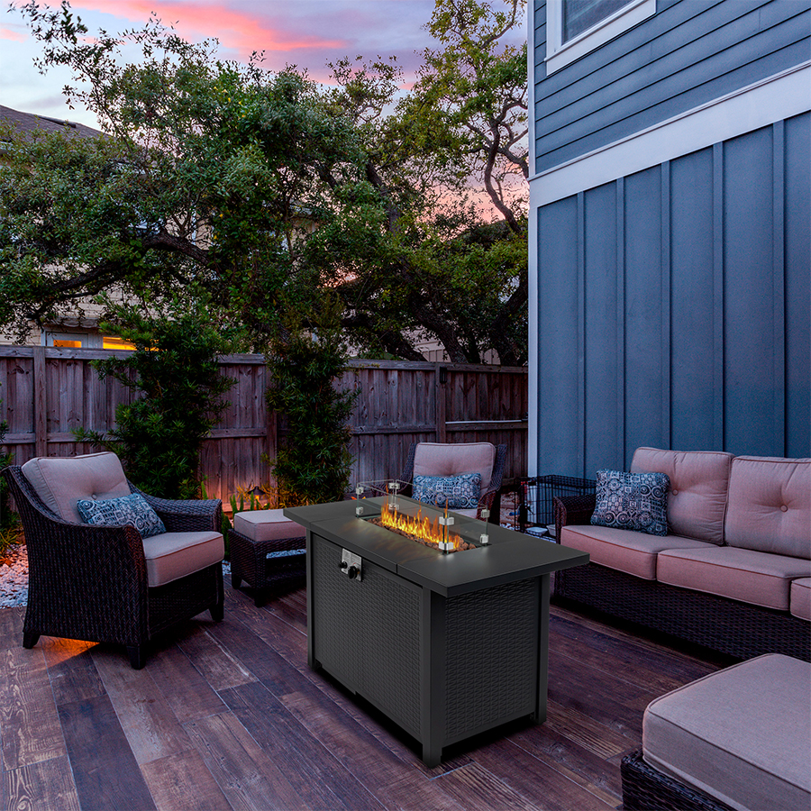 43-Inch Gas Fire Pit Table with 50,000 BTU output provides warmth and ambiance for outdoor gatherings