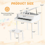 Introduce your child to the joy of music with this kids 30-key toy grand piano. Designed with exquisite craftsmanship and a classical appearance, this miniature piano provides an authentic look and sound that will capture your child’s attention while encouraging creativity. Complete with a matching bench and music rack, it offers a full piano-playing experience scaled for little musicians.