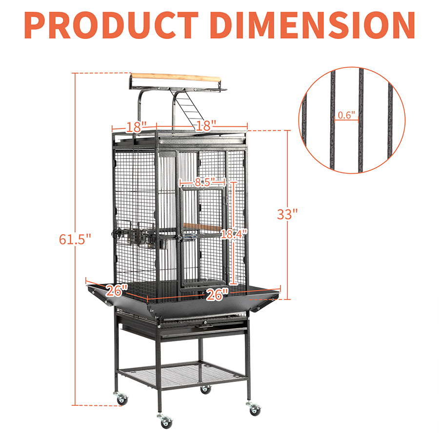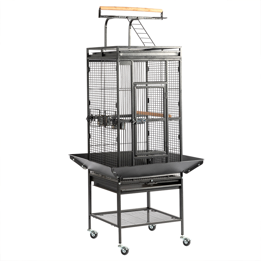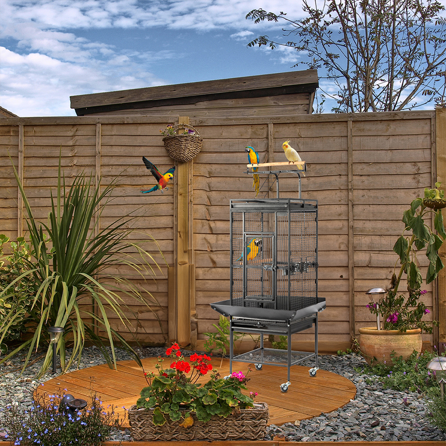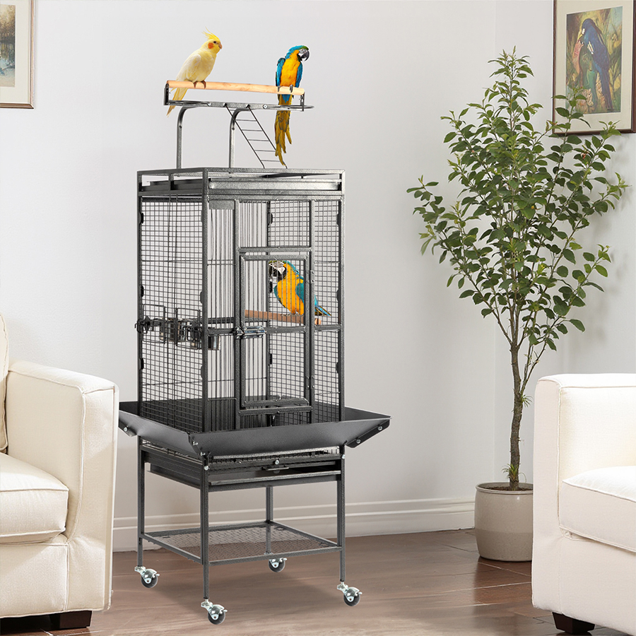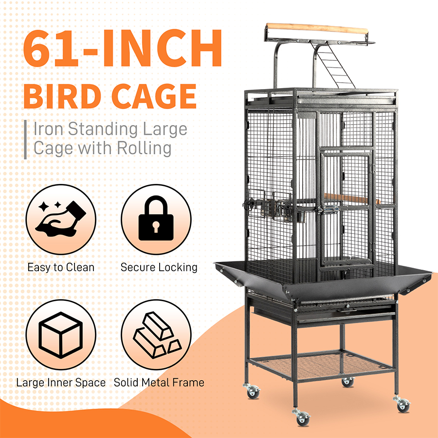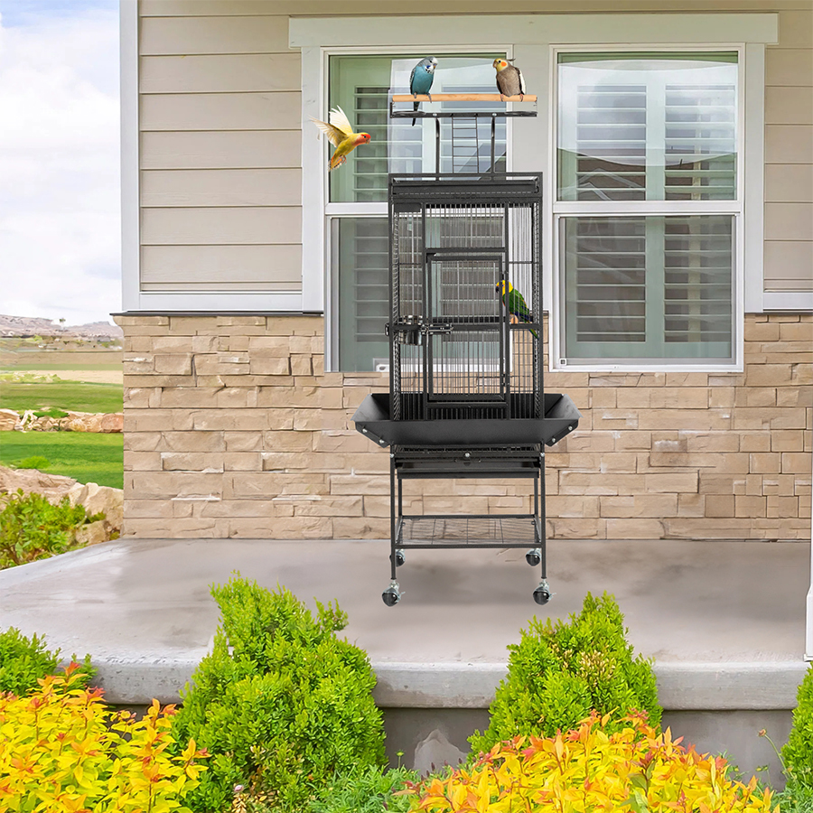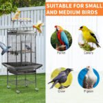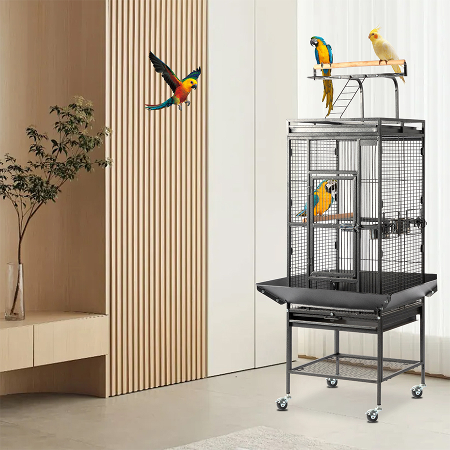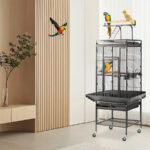 Constructed from heavy-duty wrought iron with a rust-resistant black coating, this bird cage is built to last through years of daily use. It provides a large and safe interior that’s ideal for parrots, cockatiels, lovebirds, and parakeets to stretch their wings, play, and rest comfortably.