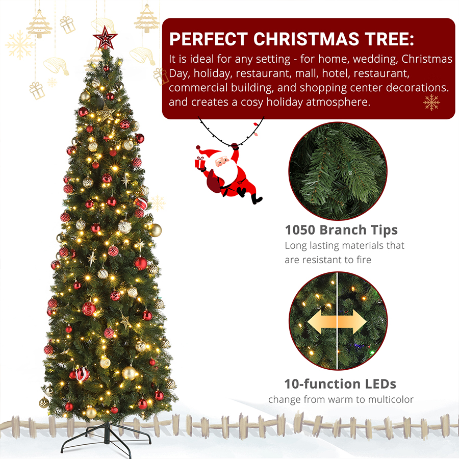 🌟 Slim Pencil Shape Design – Perfect for tight spaces, corners, or entryways, this slim 7.5ft Christmas tree offers elegance without taking up space.