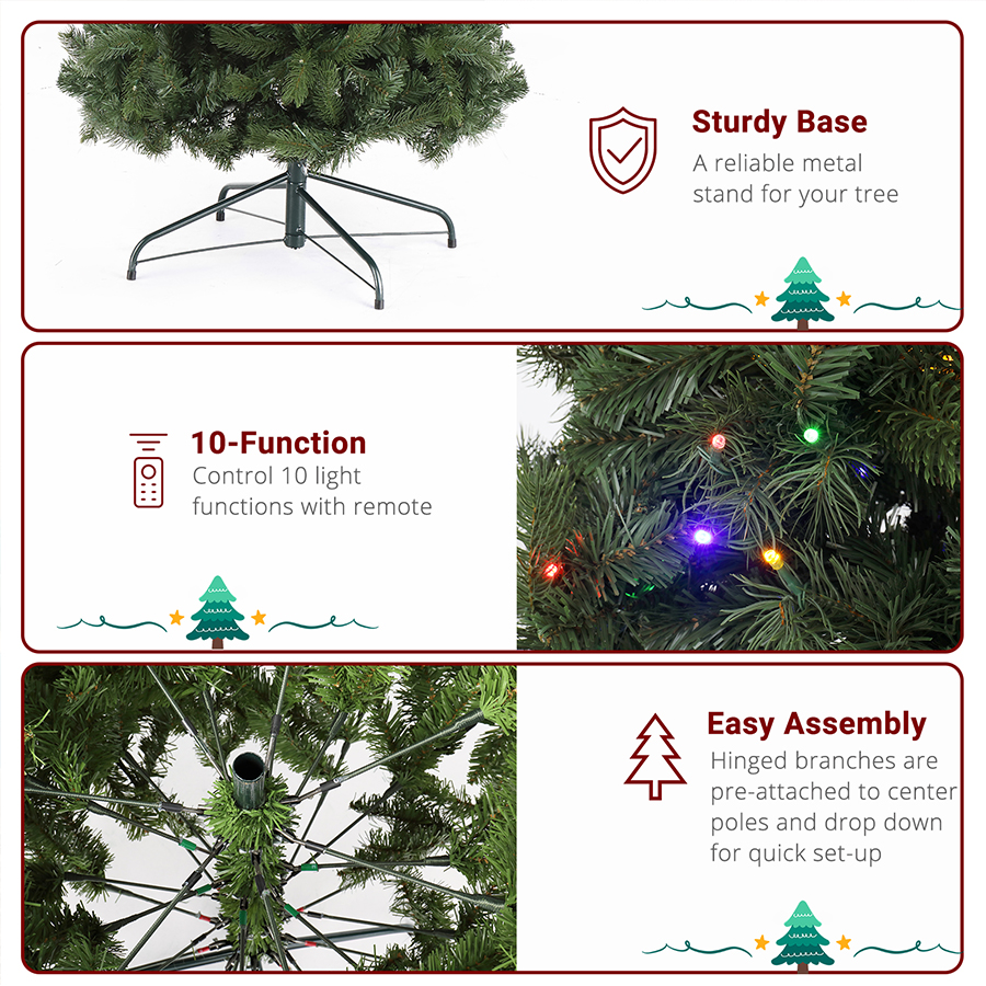 Assembly is fast and effortless with its automatic hinged structure. Simply connect the sections, unfold the branches, and fluff them into shape. The sturdy metal base provides reliable stability, ensuring your tree stands tall and secure throughout the season.