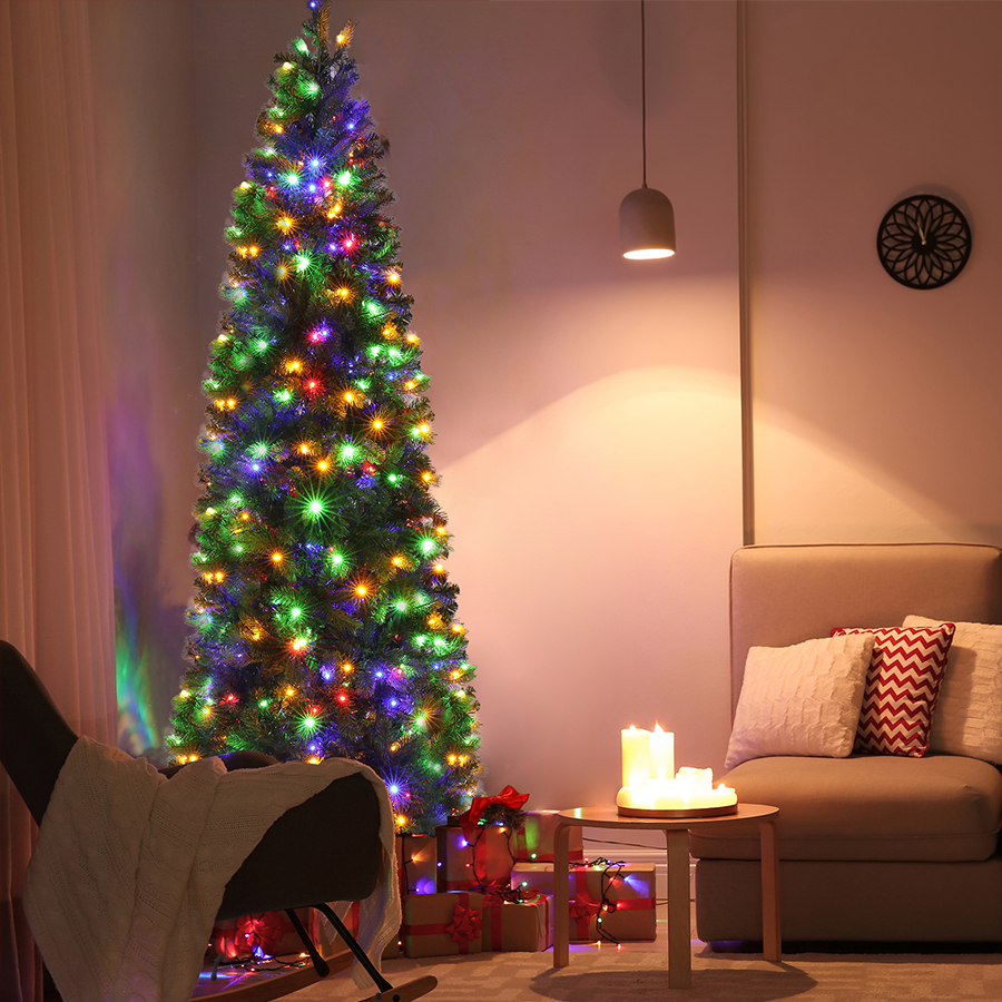 Whether you’re decorating your living room, hallway, office, or store, the slim pencil shape of this pre-lit Christmas tree makes it versatile for any indoor environment. It’s ideal for those who want to maximize style while saving space—perfect for apartments, townhomes, or reception areas.