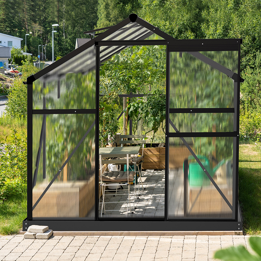 6×10 Polycarbonate Greenhouse with hybrid panels delivers balanced sunlight and UV protection