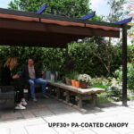 The retractable canopy is made from 180g PA-coated polyester fabric with UPF30+ sun protection, allowing you to easily adjust the amount of shade based on weather conditions or time of day. A built-in magnetic pad keeps the canopy securely in place when extended, ensuring smooth and reliable operation. This makes it ideal for backyard pergola seating areas, patio dining spaces, and outdoor entertaining zones.