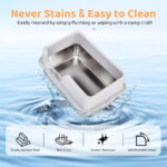 Cleaning has never been easier — simply detach the lid and use the included litter scoop to remove waste. The smooth, non-stick surface of the stainless steel pan wipes clean effortlessly and resists odor absorption, ensuring a fresh and hygienic environment day after day. The added scoop storage box helps keep accessories organized for easy access.