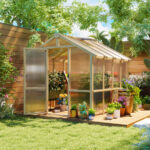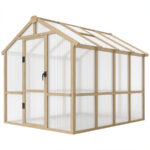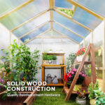 With its spacious walk-in interior and durable materials, this wooden polycarbonate greenhouse for backyard use is perfect for growing vegetables, flowers, herbs, and seedlings. Assembly is required, and four people are recommended for efficient installation.